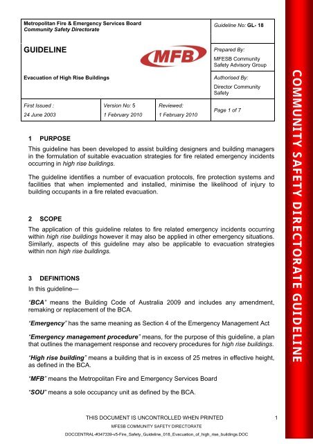 Community Safety Directorate Guideline Metropolitan Fire Brigade